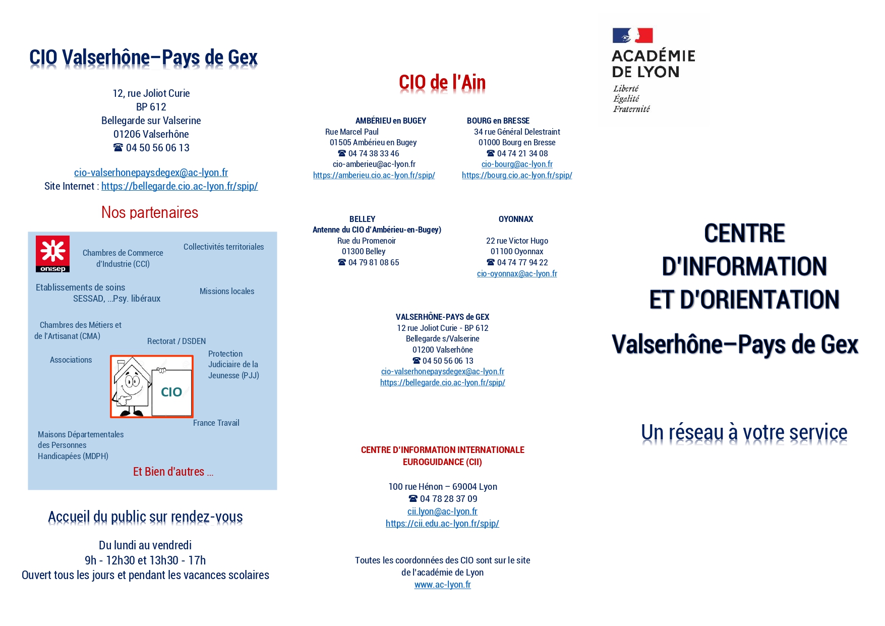CIO est ouvert tous les jours de 9h00 à 12h30 et de 13h30 à 17h00.